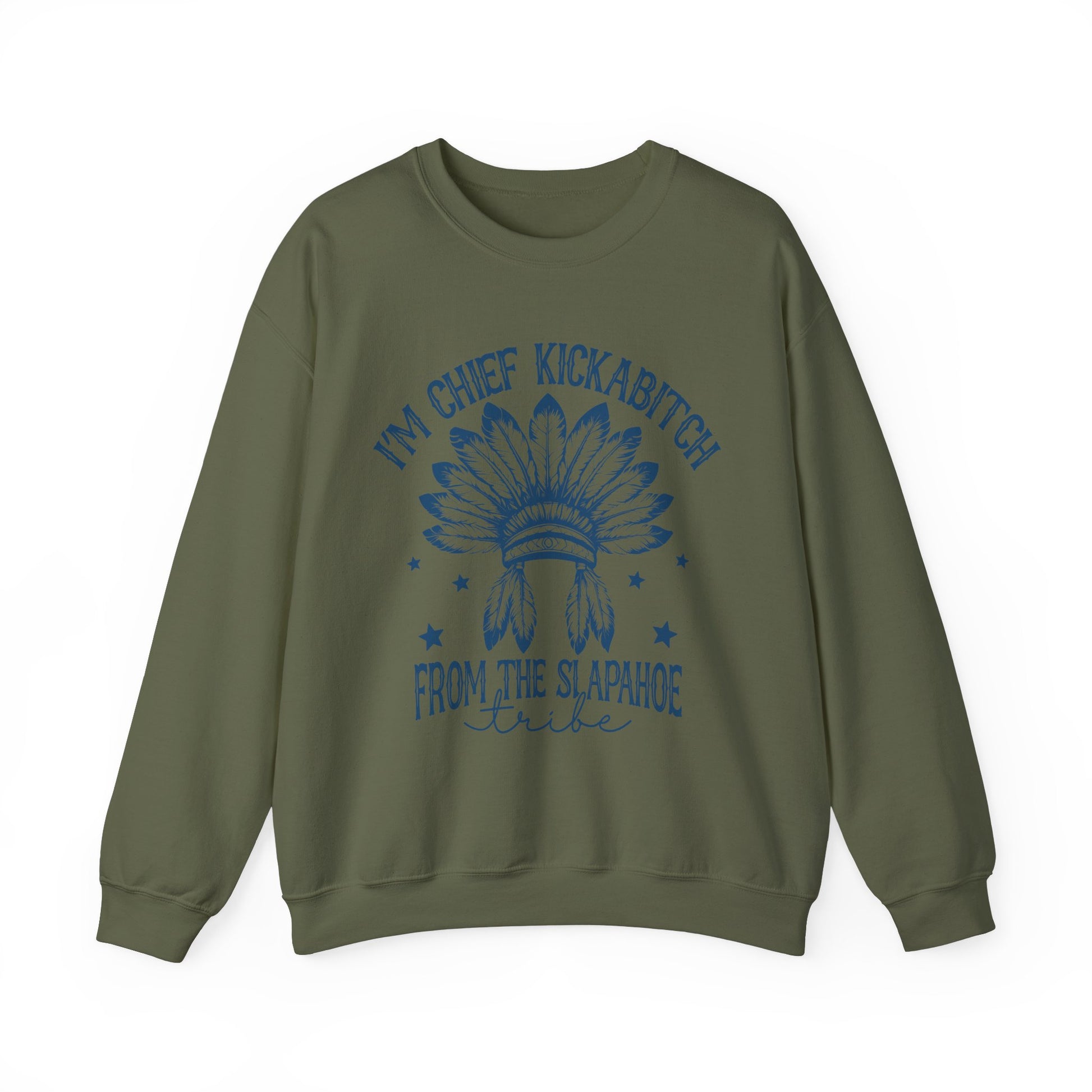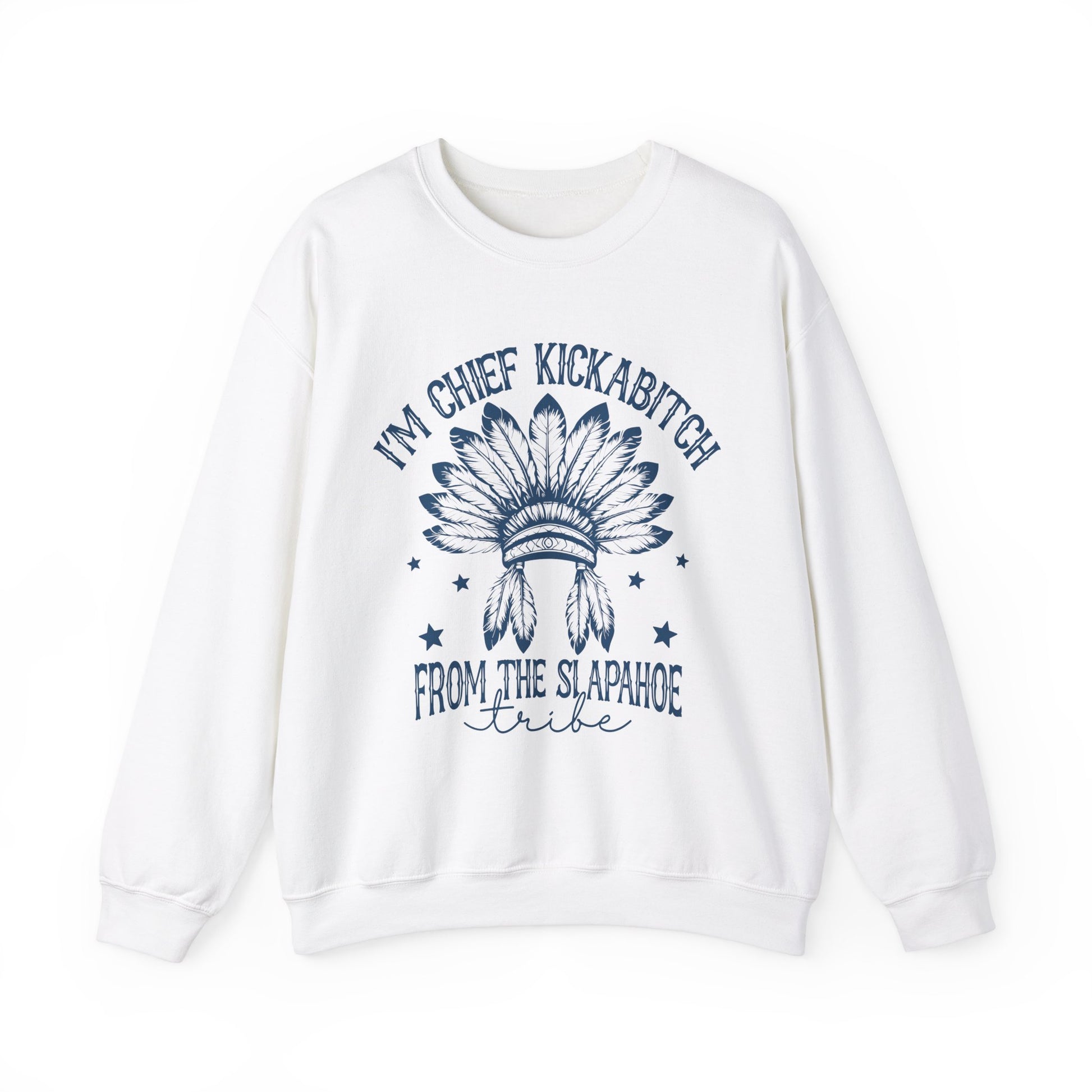 Featuring the iconic phrase “Chief Kickabitch of the Slapahoe Tribe” in a standout font, this sweatshirt is not for the faint of heart—it’s for those who dare to embrace their unapologetic side. Whether you’re reclaiming your title as the ultimate boss or just looking to add a little fun to your wardrobe, this piece is sure to turn heads.